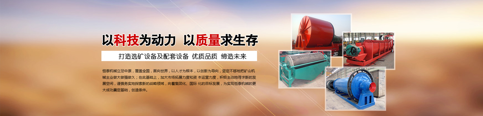 鞏義市恒泰機械廠順應全球環境保護的趨勢,緊密跟隨世界科技發展步伐,先后研制多種節能環保型機械設備,形成規模化批量生產。尤以烘干機設備、破碎機設備、撕碎機設備、給料篩分設備、球磨機選礦設備的生產設計,具有豐厚的技術經驗,產品機械化、自動化程度高,質量穩定、安全。